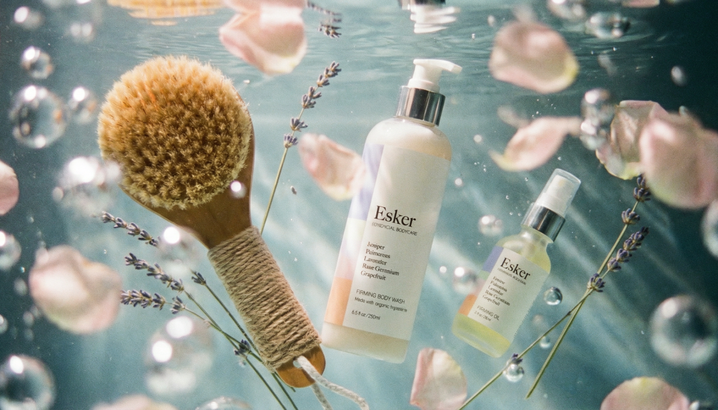 Enhance your ritual with a shower or bath with an Esker Body Wash prior to using your Firming Oil and Allover Roller.