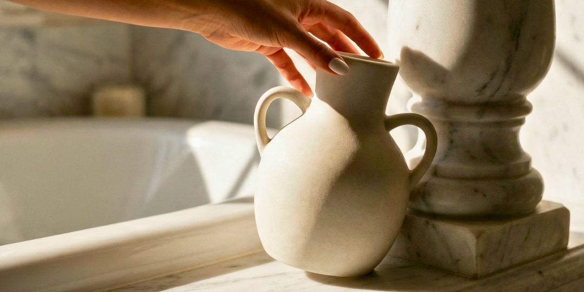 The ceramic amphora elevates the ritual, keeps the powder fresh, and turns your bathroom into a space that feels intentional and beautiful.