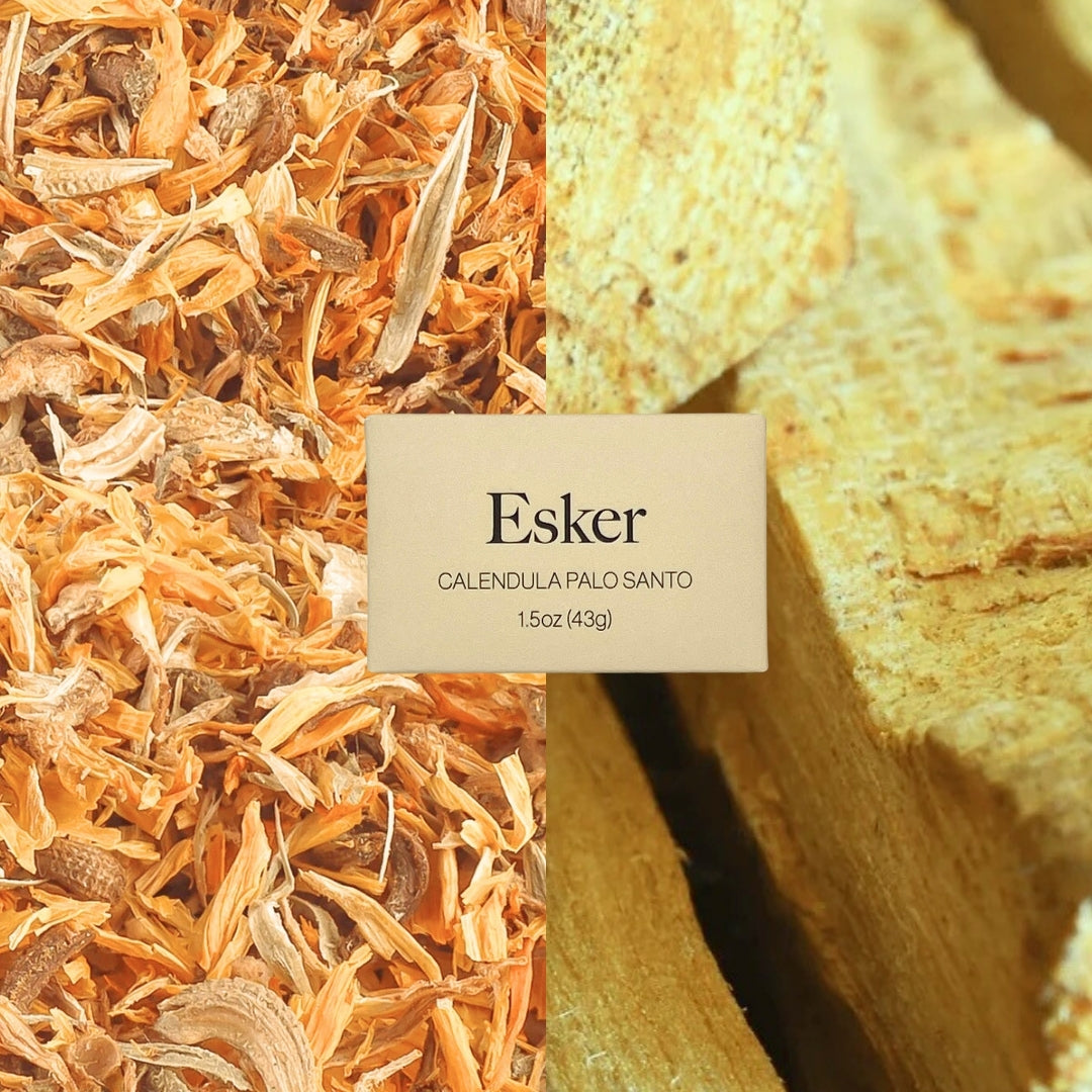The marriage of calendula and palo santo creates an indulgent, grounding aroma that is deeply restorative. The calming and healing properties of calendula complement the cleansing effects of palo santo crafting a rich, tranquil scent that is comforting and elevating.