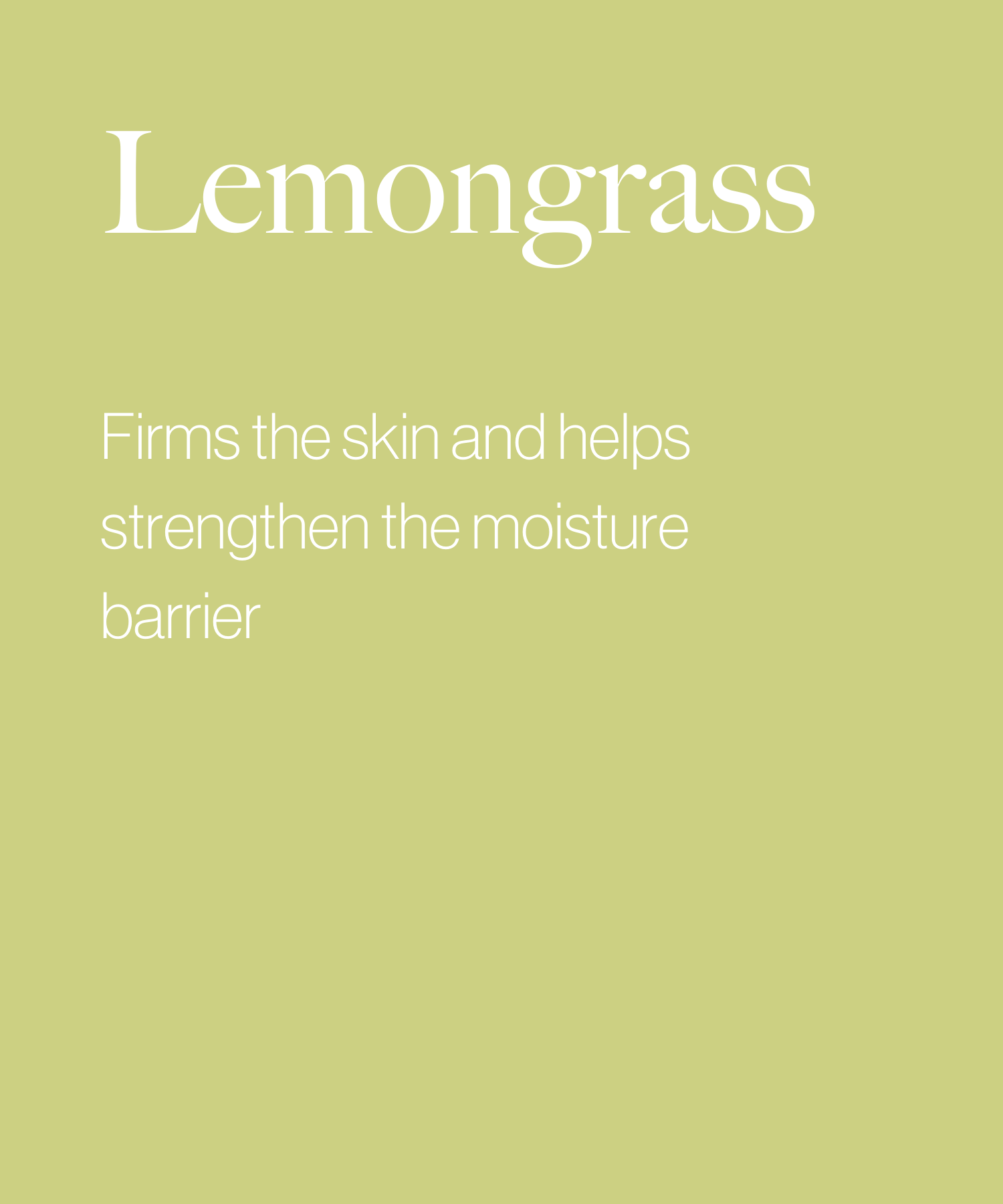 LEMONGRASS: Fresh, gentle citrus that tones skin and settles stomach